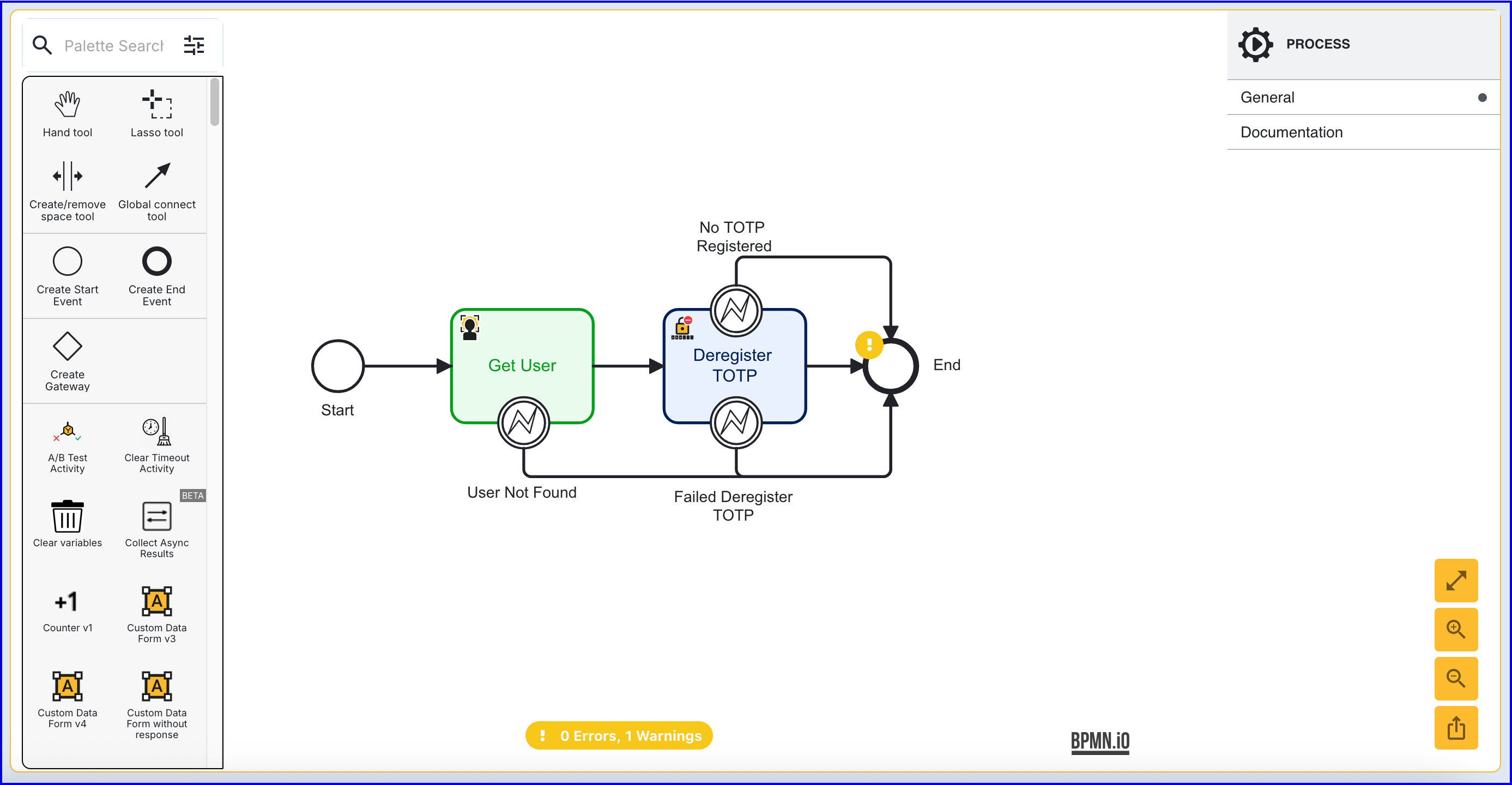 Users with a registered TOTP can deregister their configuration using the 'Deregister TOTP' activity. This guide will demonstrate how to set up a simple Process Definition that utilizes this activity to deregister TOTP from a given Identity Store User. Note that before deregistering TOTP, an existing TOTP must be present. See the TOTP Registration guide for more information on TOTP registration.