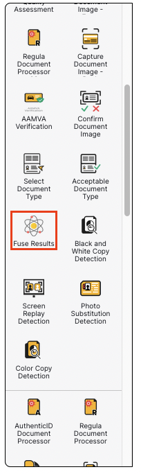 In the example above, the Fuse Results activity is placed after all individual document authentication checks. The Fuse Results activity should also be added at the end of all authentication checks if a back side is captured.