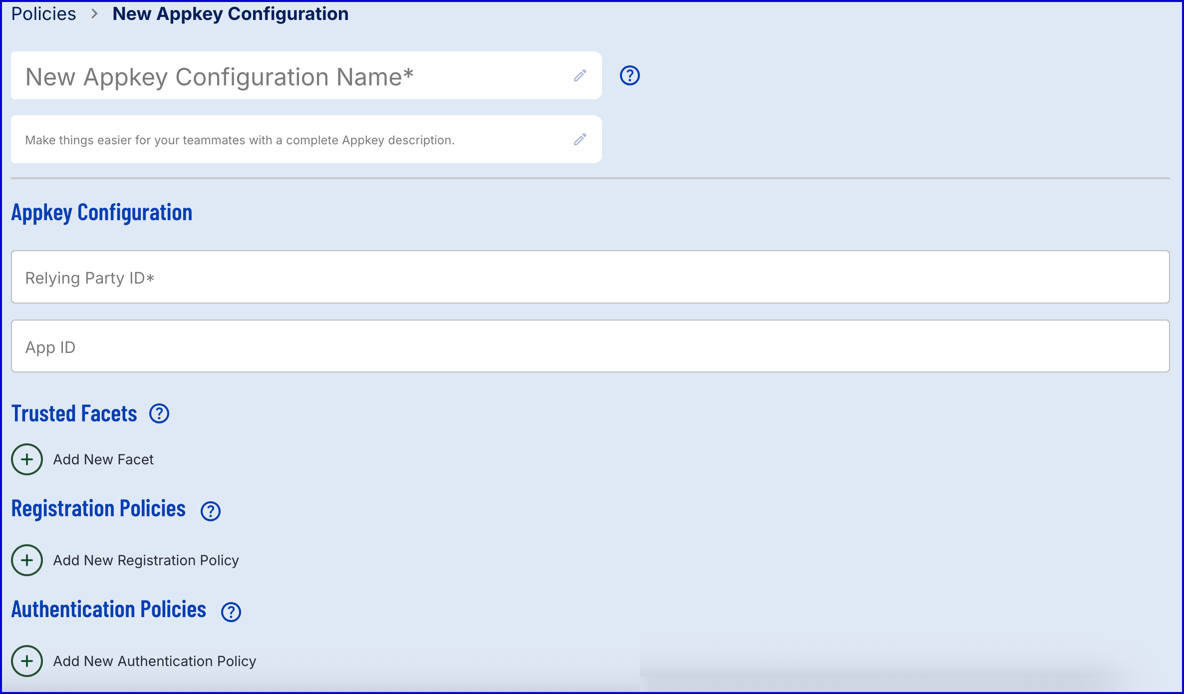 - Configuration Name - The name of the Appkey policy
