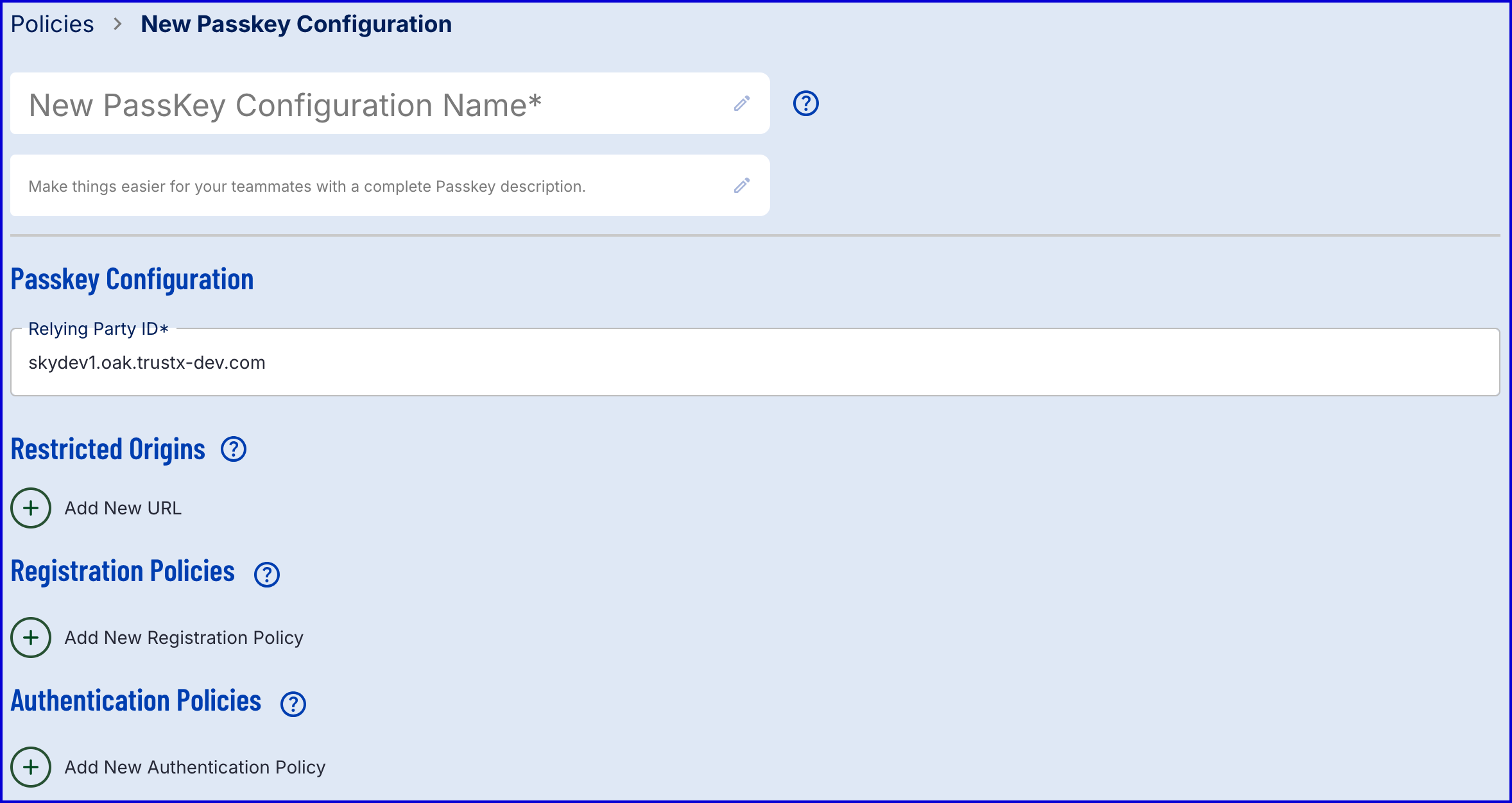 - Configuration Name - The name of the Passkey policy.