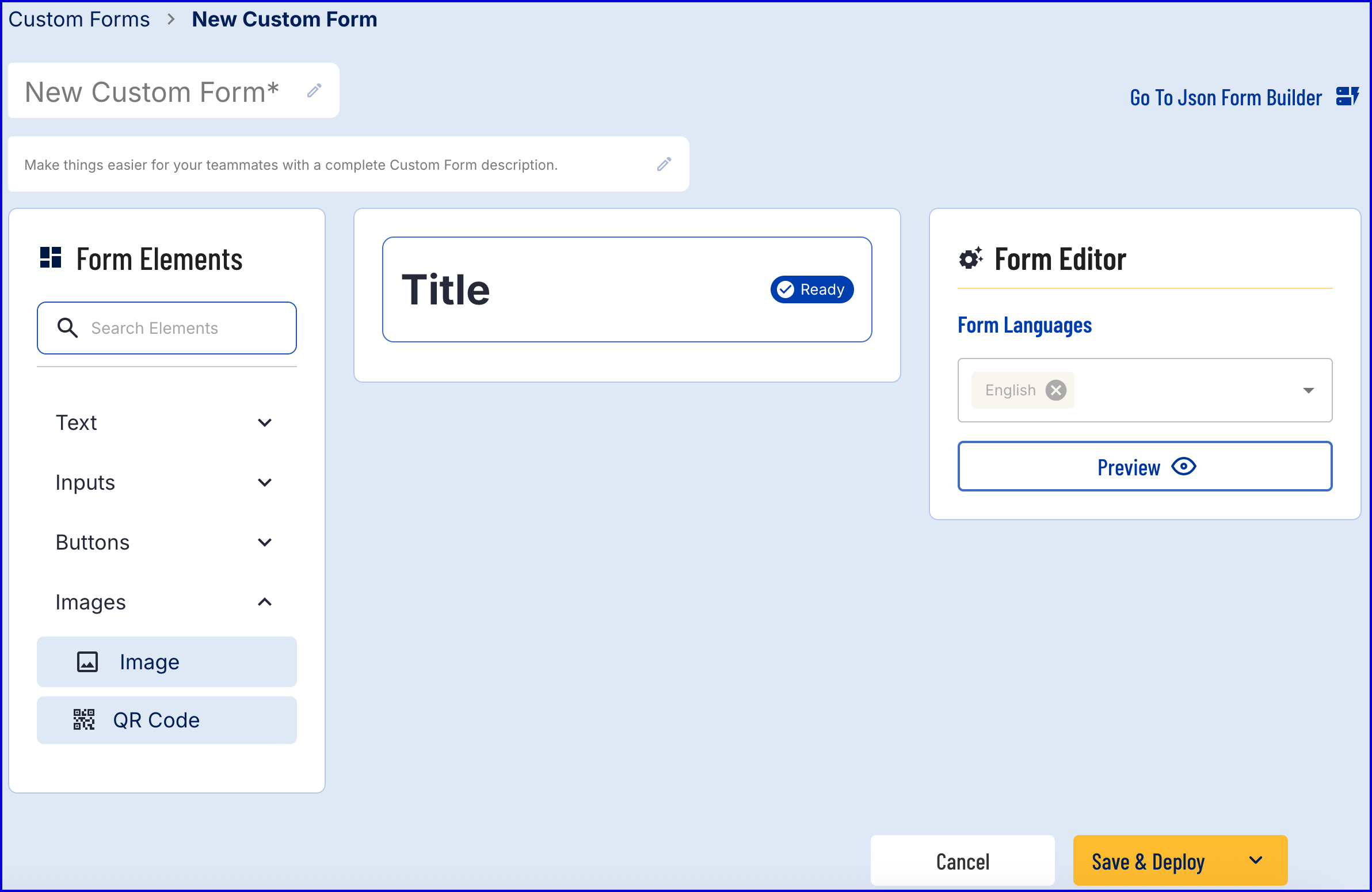 - Once the Custom Form is finalized, click the 'Save & Deploy' button.