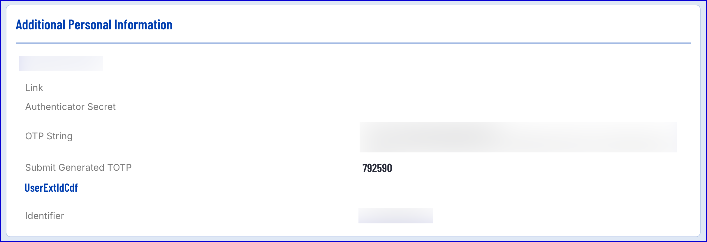 - The submitted TOTP and identifier can be found in the 'Additional Personal Information'.