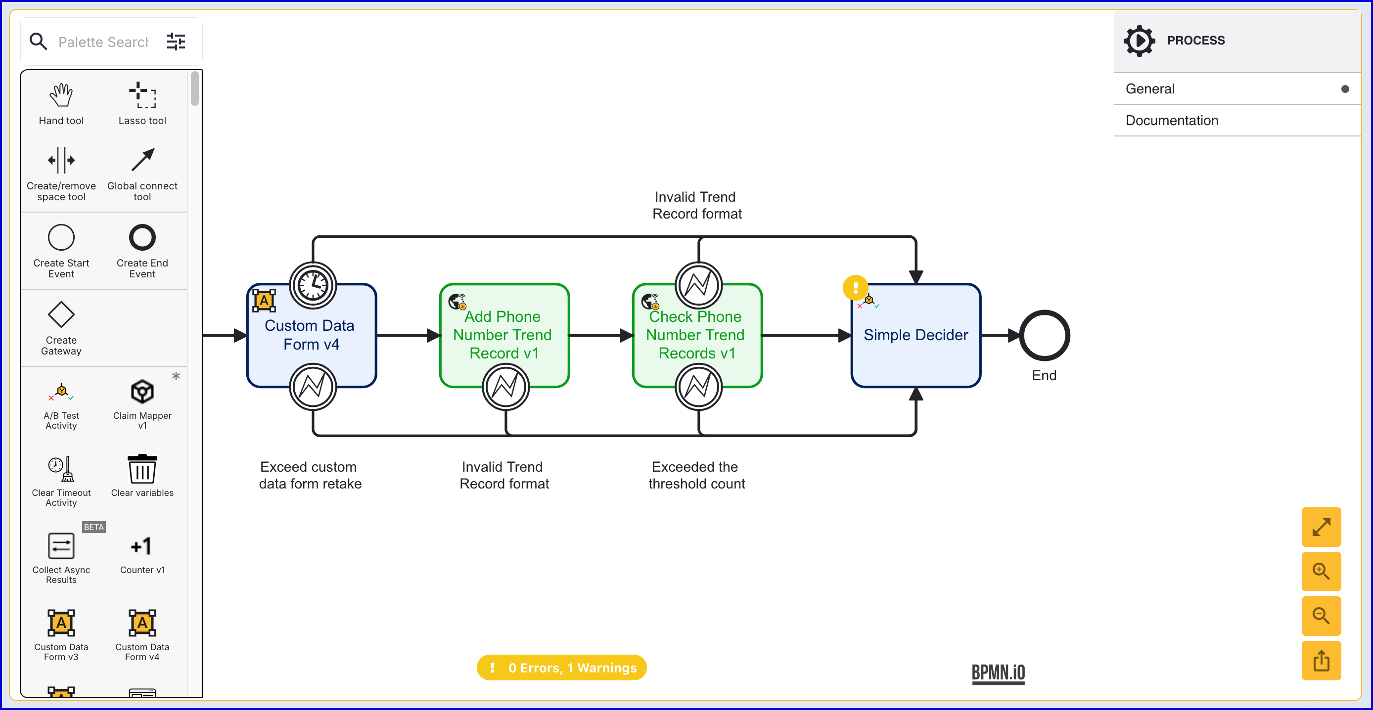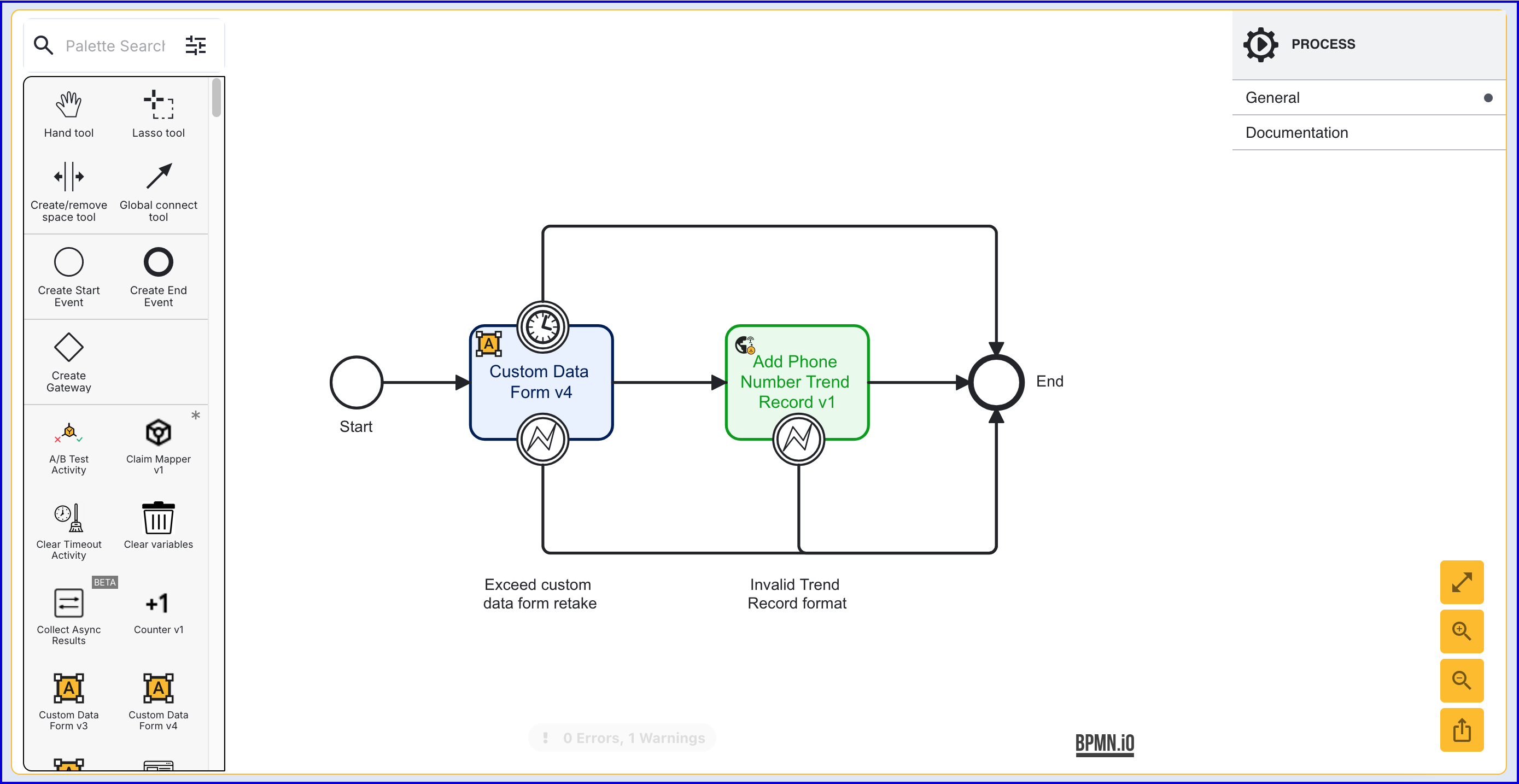 ${_customFormData["form1"]["currentCapture"]["customDataFormDataMap"]["phone"]}, can be used. - Additionally, the activity features two error boundary events: