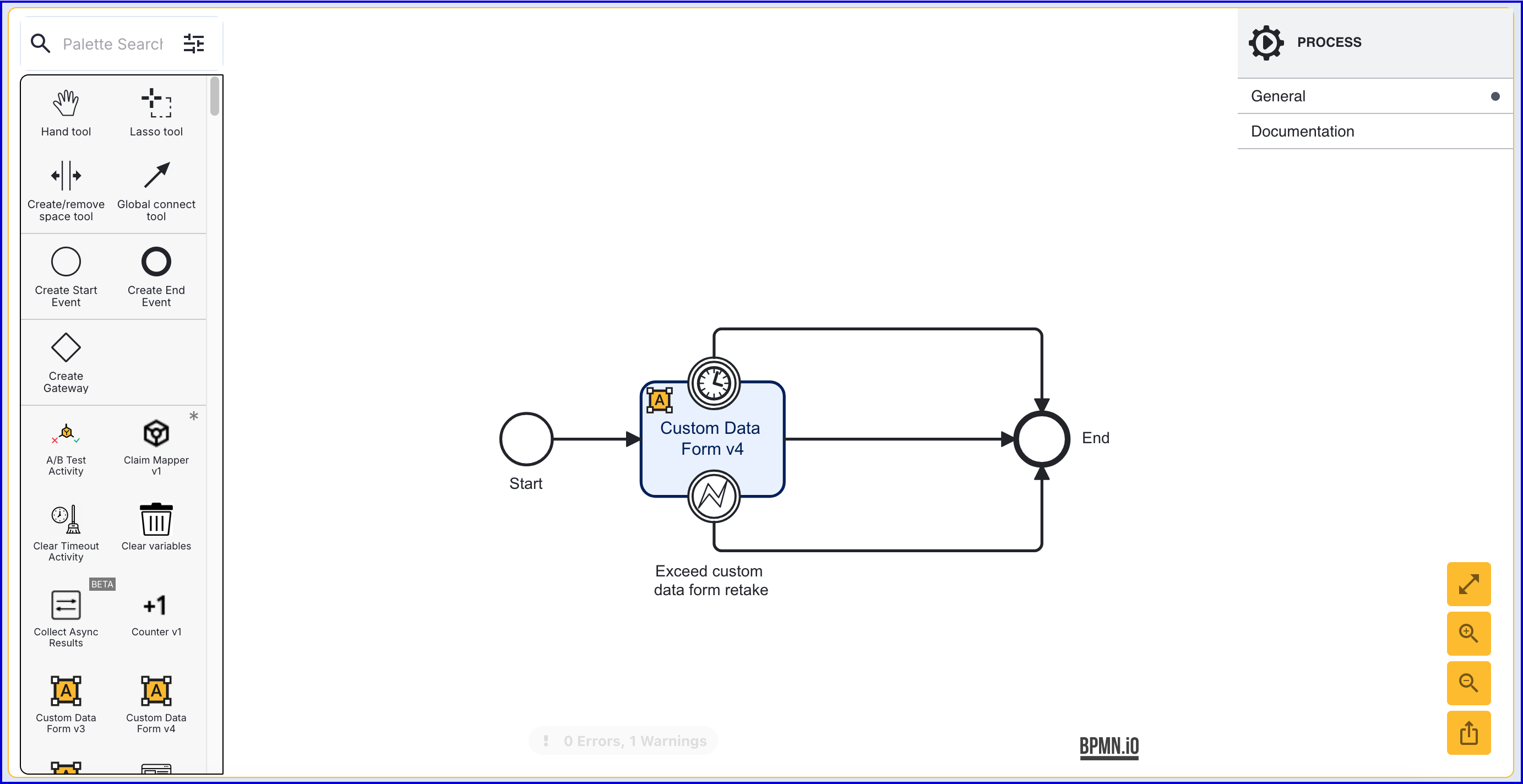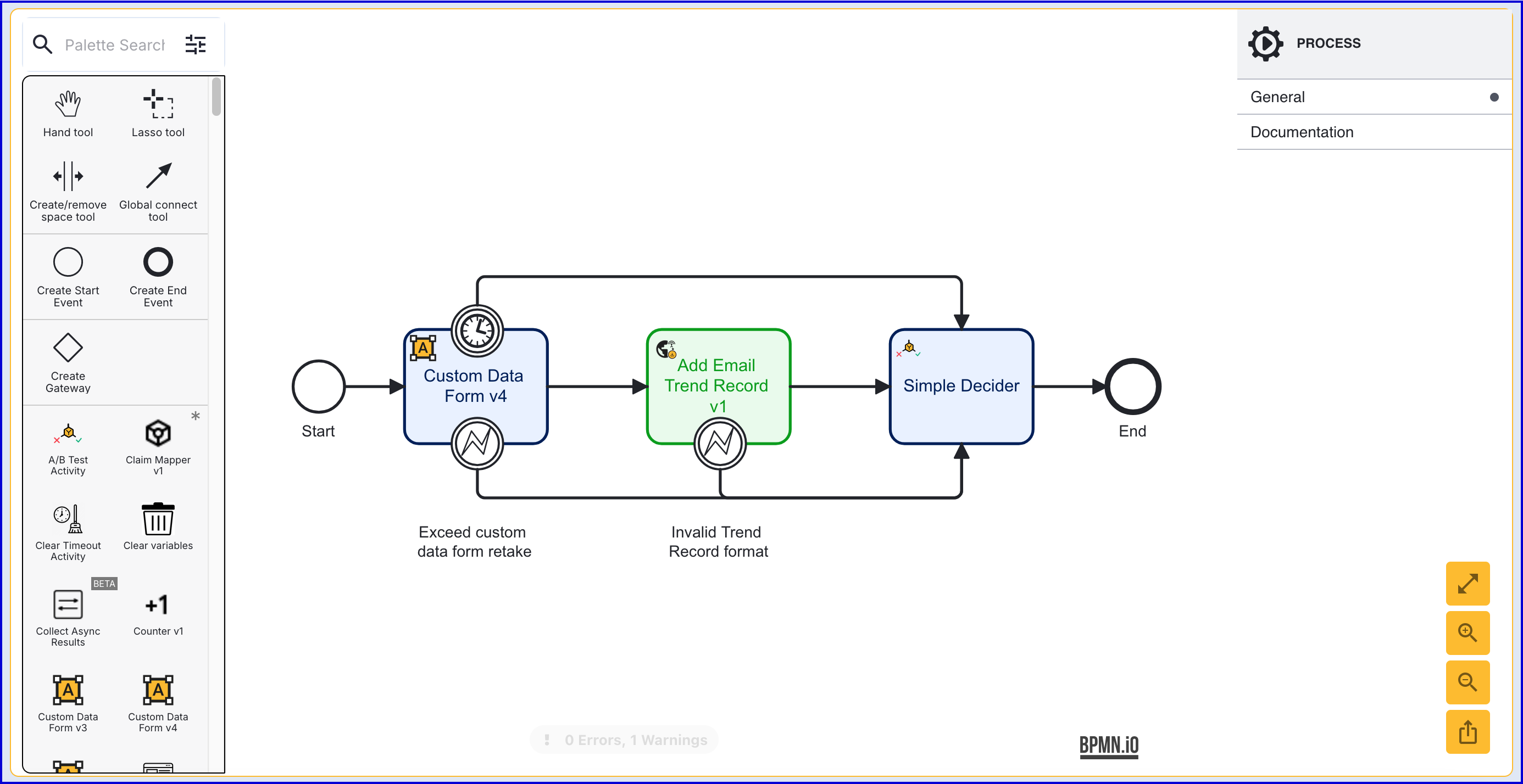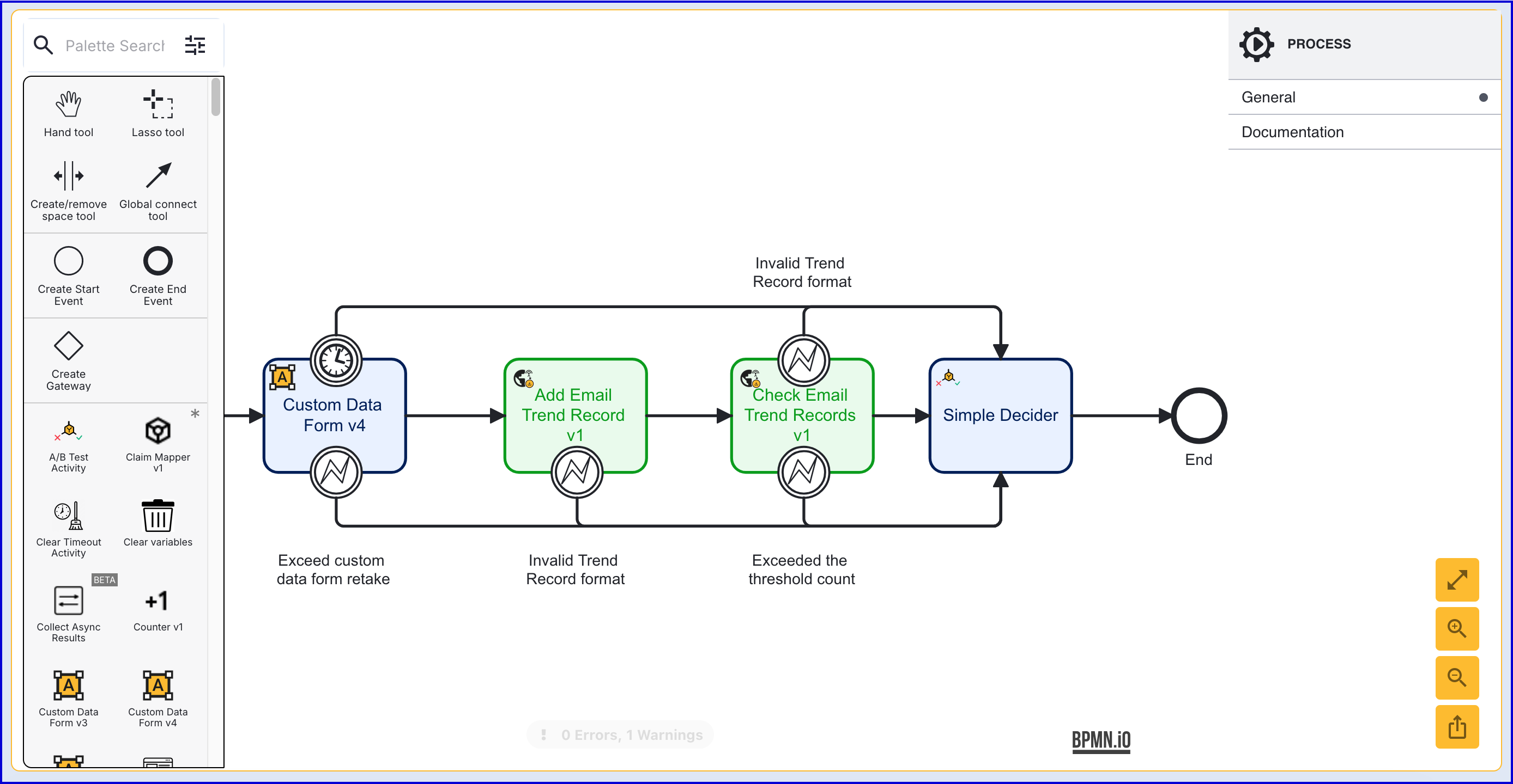 ${_customFormData["form1"]["currentCapture"]["customDataFormDataMap"]["email"]}, can be used. - Additionally, the activity features two error boundary events: