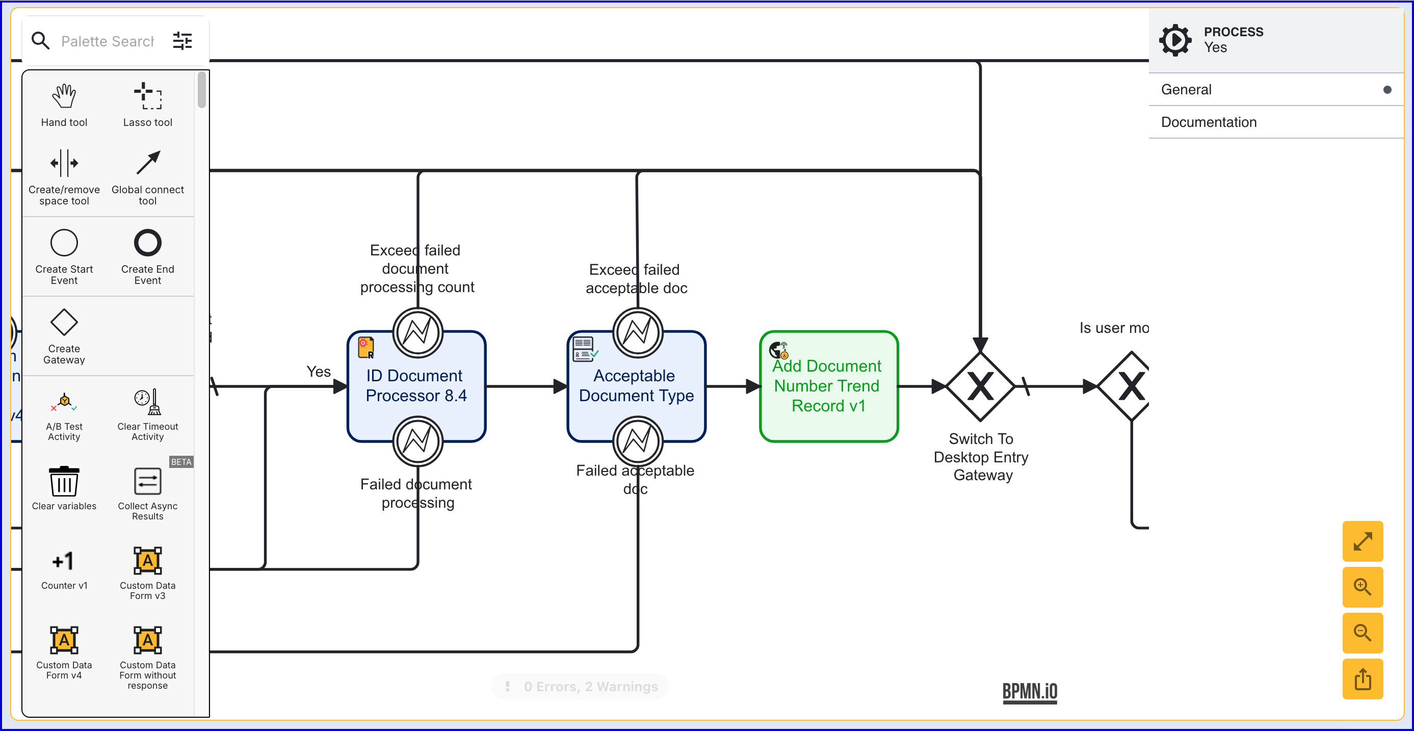 - After the 'Acceptable Document Type' activity, add an 'Add Document Number Trend Record' activity to the Process Designer and connect them using the 'Global connect tool'.