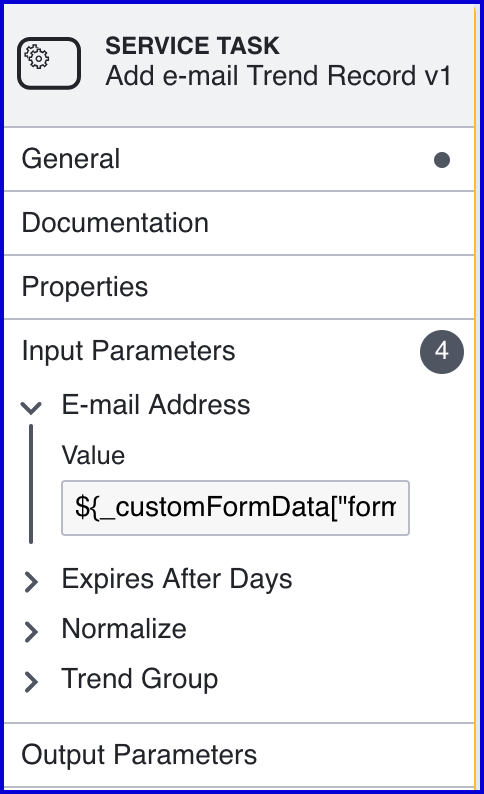 | Expires After Days | The number of days after which the trend record will expire. Supports a maximum of 90 days and a minimum of 1 day. | Integer | Yes | 14 |