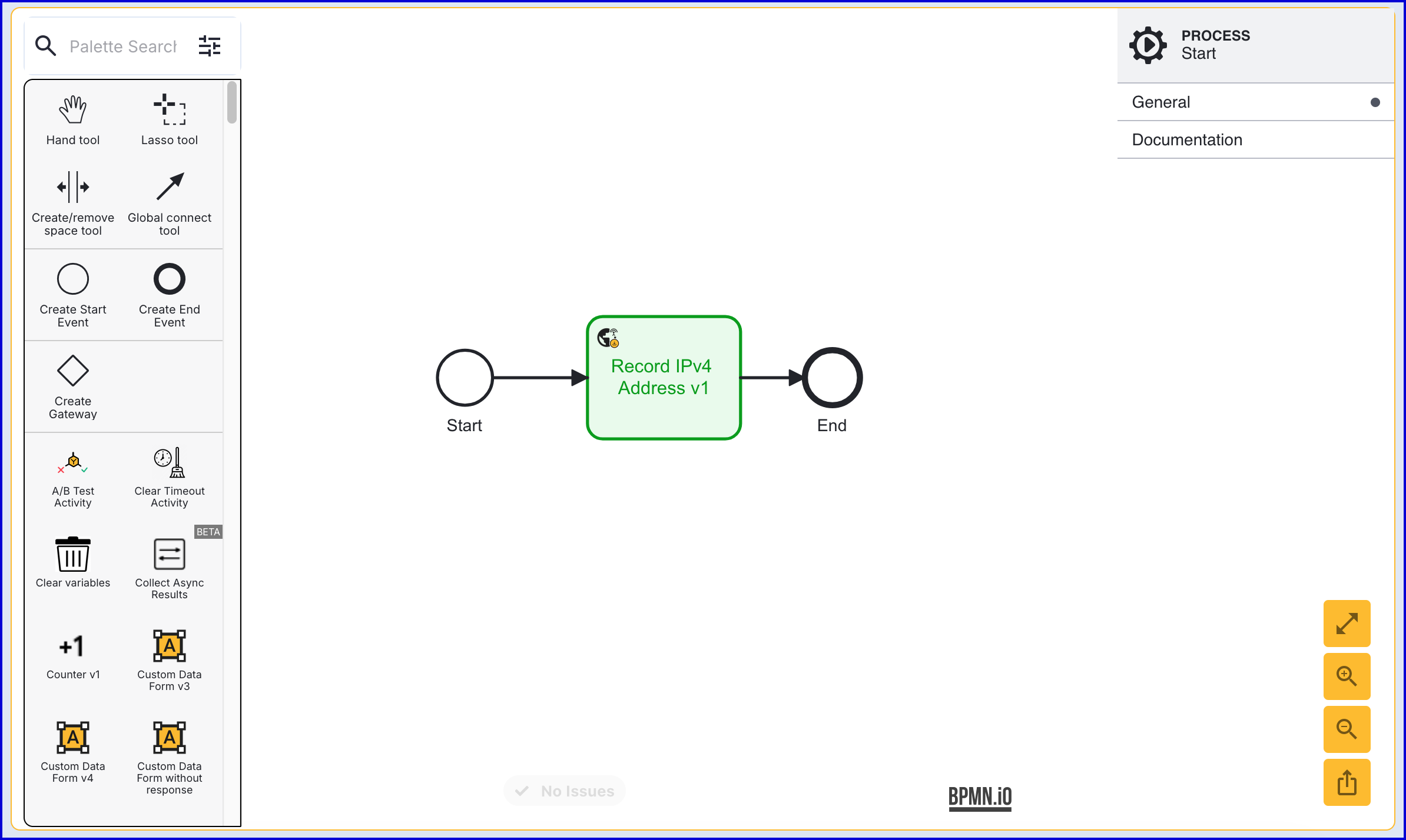 - After the 'Start Event', add a 'Record IPv4 Address' activity and connect using the 'Global connect tool'.