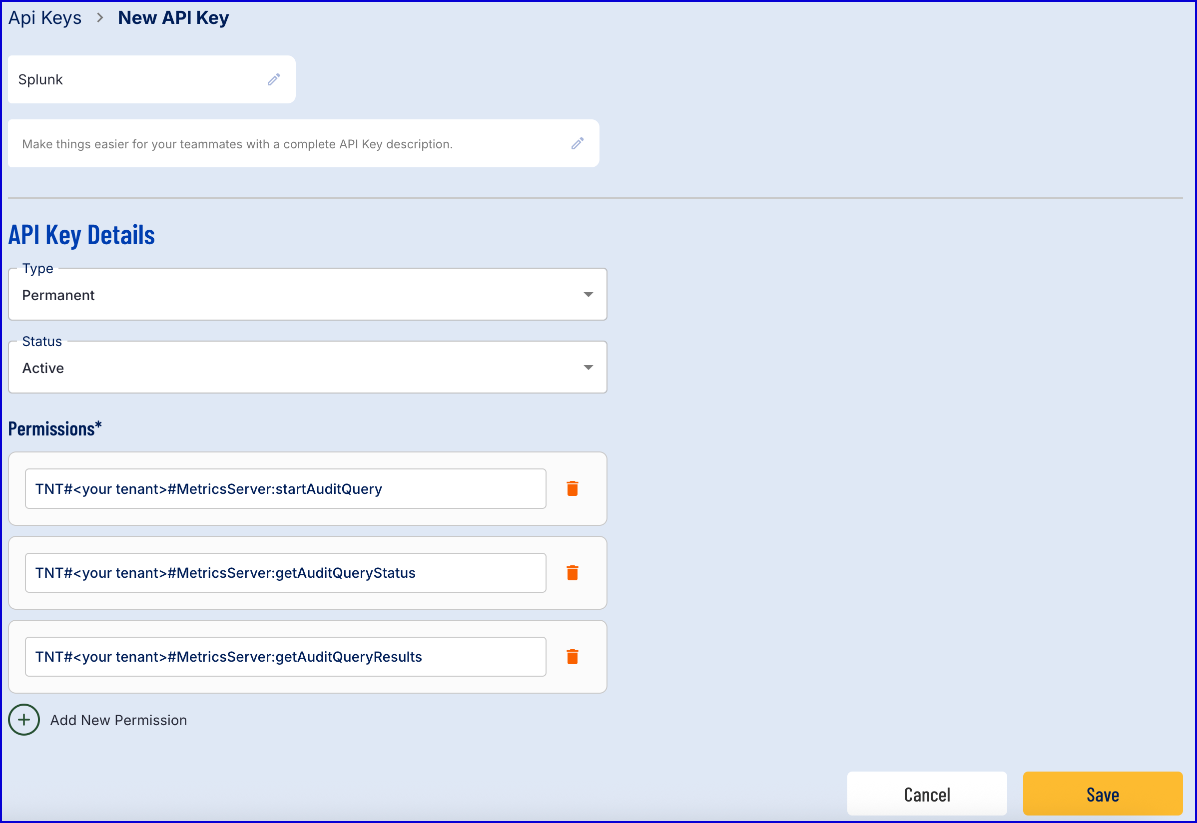 - TNT#<your tenant>#MetricsServer:getAuditQueryResults