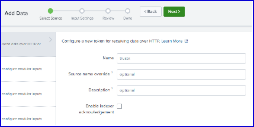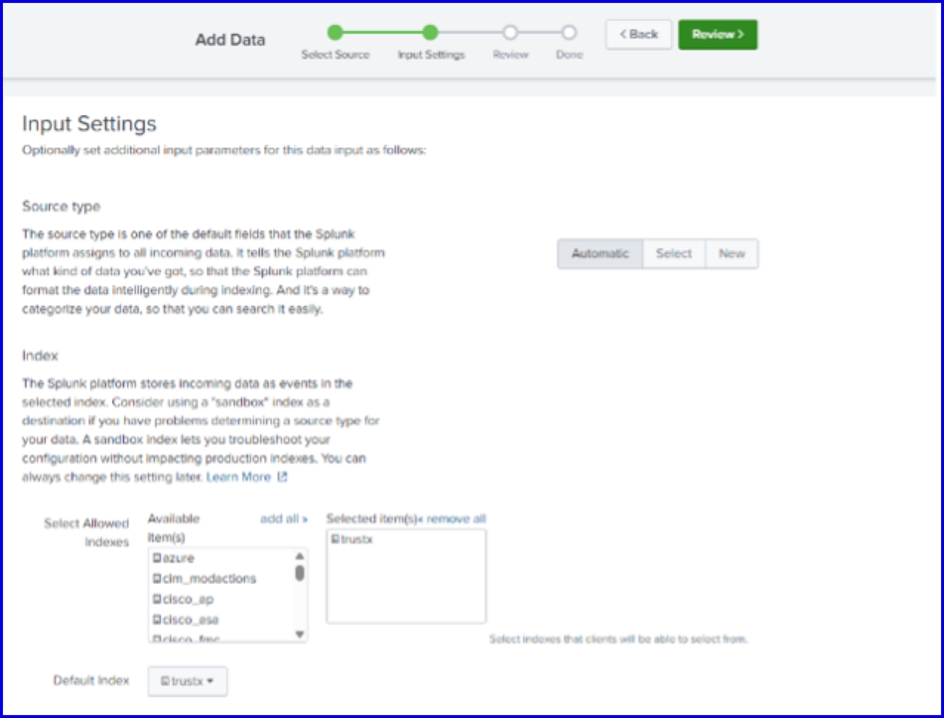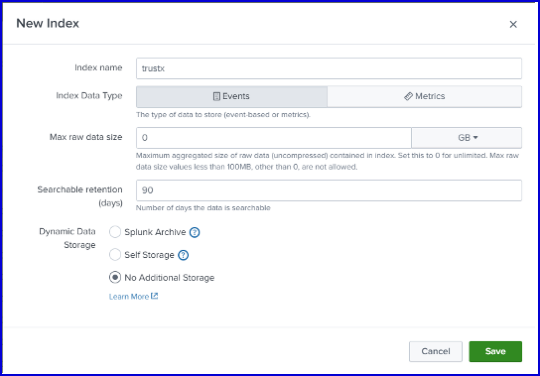 This step will describe the configurations in Splunk Cloud to create a dedicated index for TrustX and a HTTP Event Collector (HEC) token.