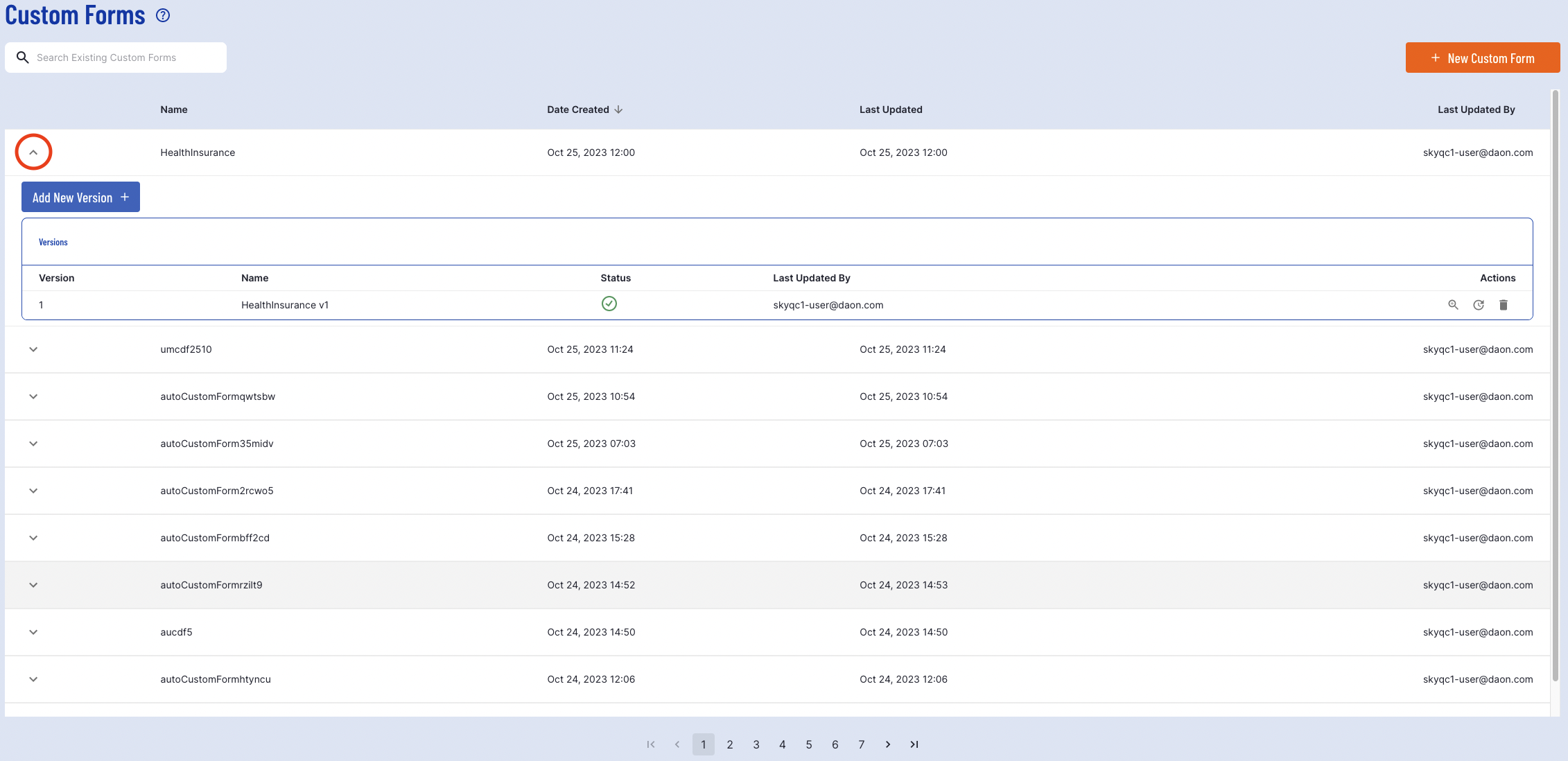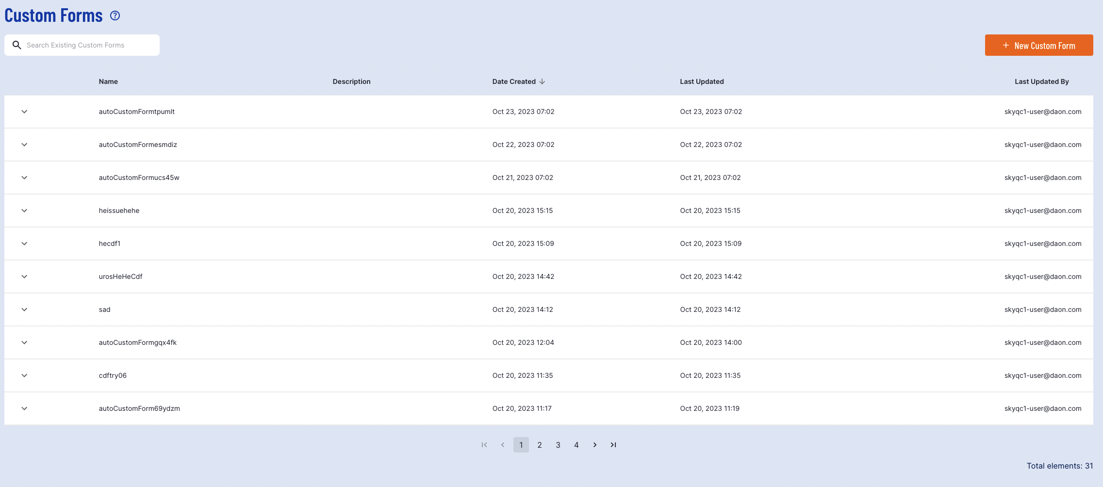 To create a new form, click the 'New Custom Form' button found at the top-right of the page.