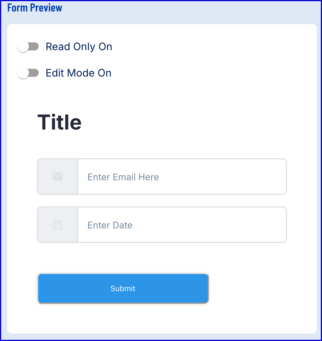 In the example above, the text field presented on the Custom Form page is not editable by the end user.