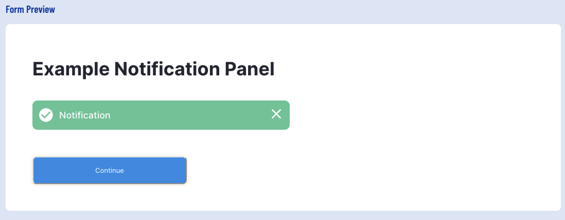 In the example above, the notification panel provides the end user with the ability to close the notification panel. This notification panel will also disappear after the allotted 5 seconds passes.