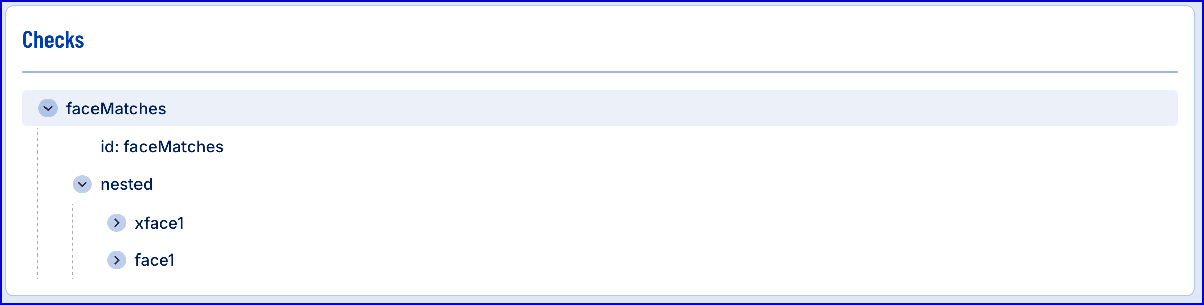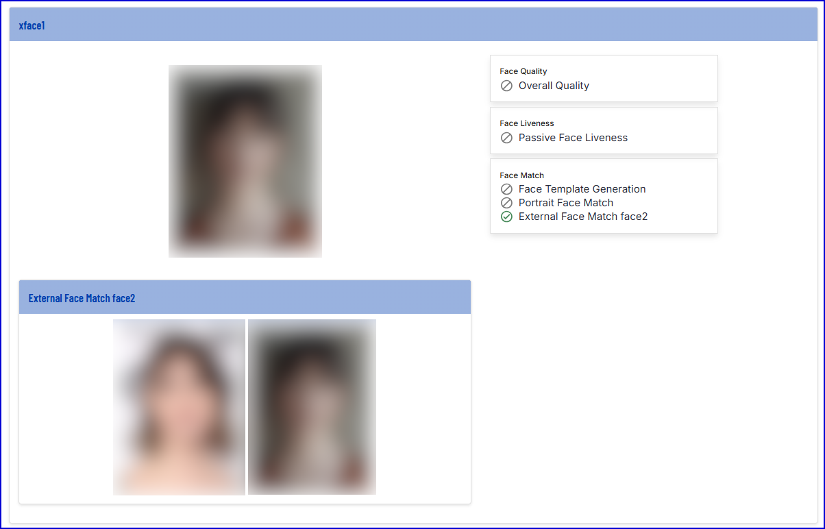 In the example above, 'xface1' represents the ID of the external face that was uploaded during the Process Instance. This face image was matched against the live face image, 'face2'.