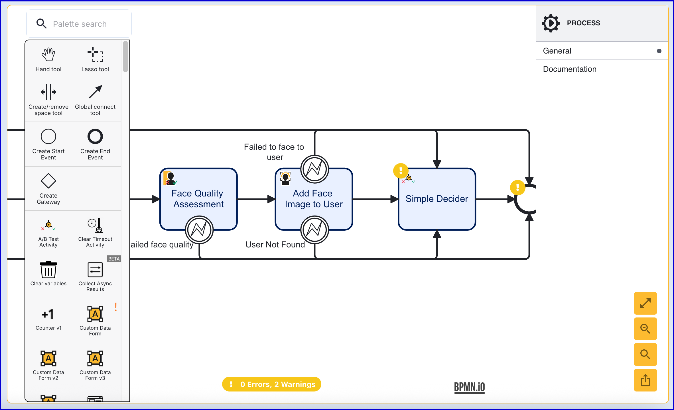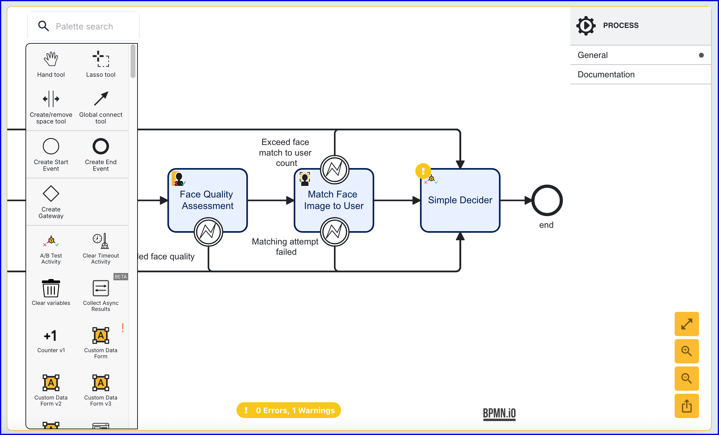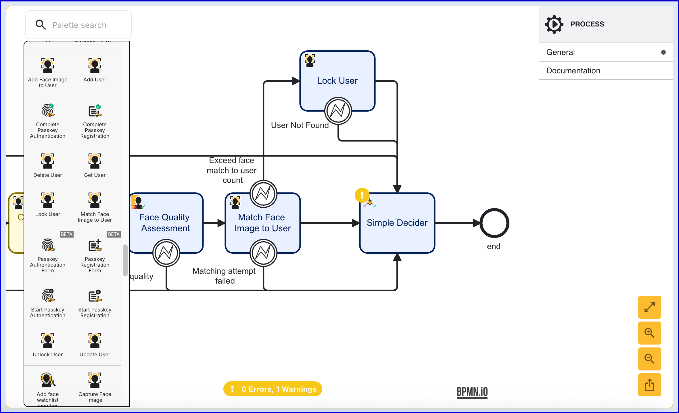 - Add the 'Match Face Image to User' activity to the Process Designer and connect after the second 'Face Quality Assessment' is completed.