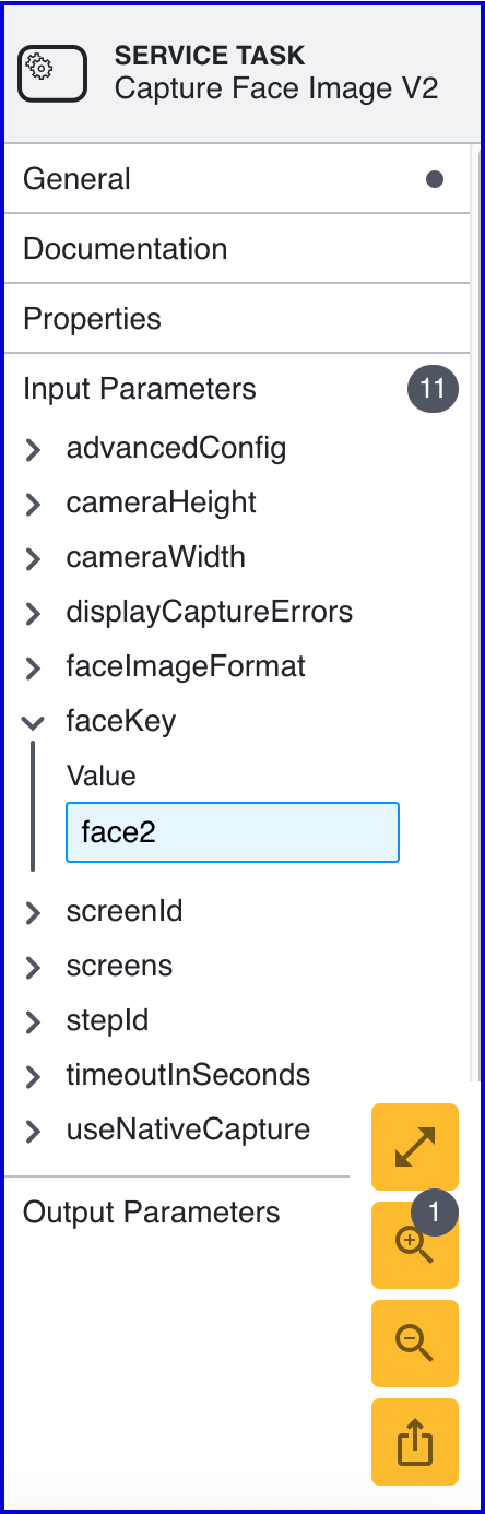 To distinguish between the first captured face image, the face key must be set within the input parameters. In this example, the second face key is set to face2