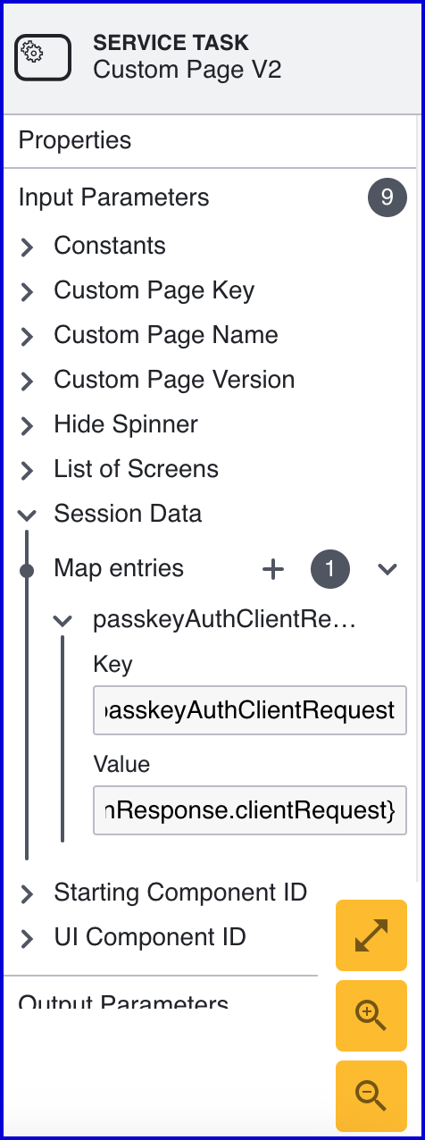 - The 'Complete Passkey Authentication' has three configurable input parameters described in the table below: