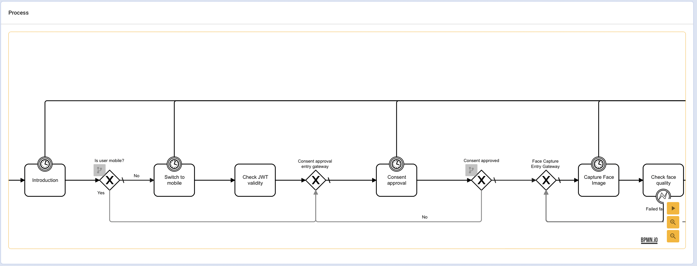 Finally, the BMPN flow will show the journey the user went through. You can follow it by pressing on Play on the right side.