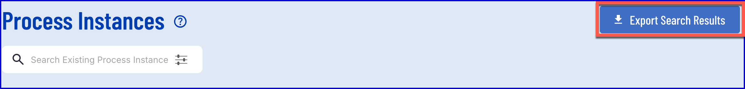 To export multiple Process Instances, as a CSV file navigate to the Process Instances page and find the 'Export Search Results' button in the top-right corner of the page.