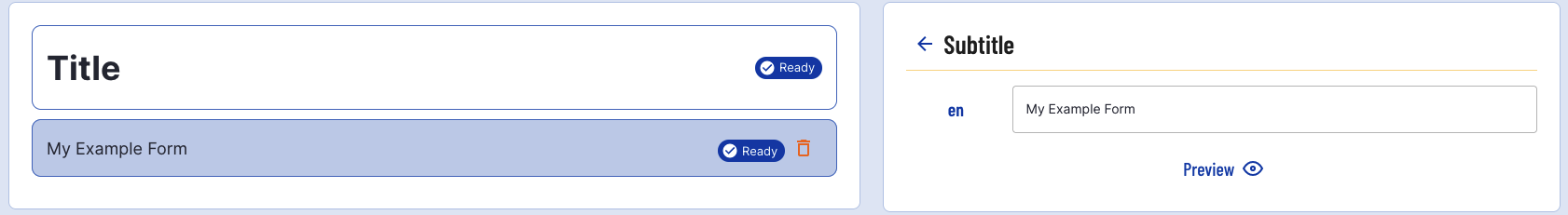 Clicking one of the buttons will add this element to the form. In this example, a Subtitle will be added which will appear under the Title.