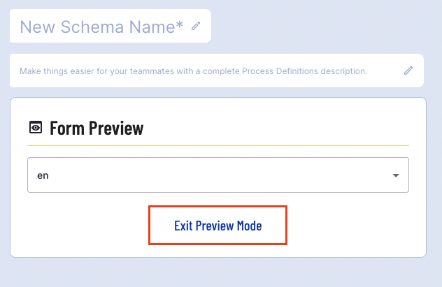 Users can exit preview mode and return to the form builder by clicking the 'Exit Preview Mode' button under the Form Preview panel.